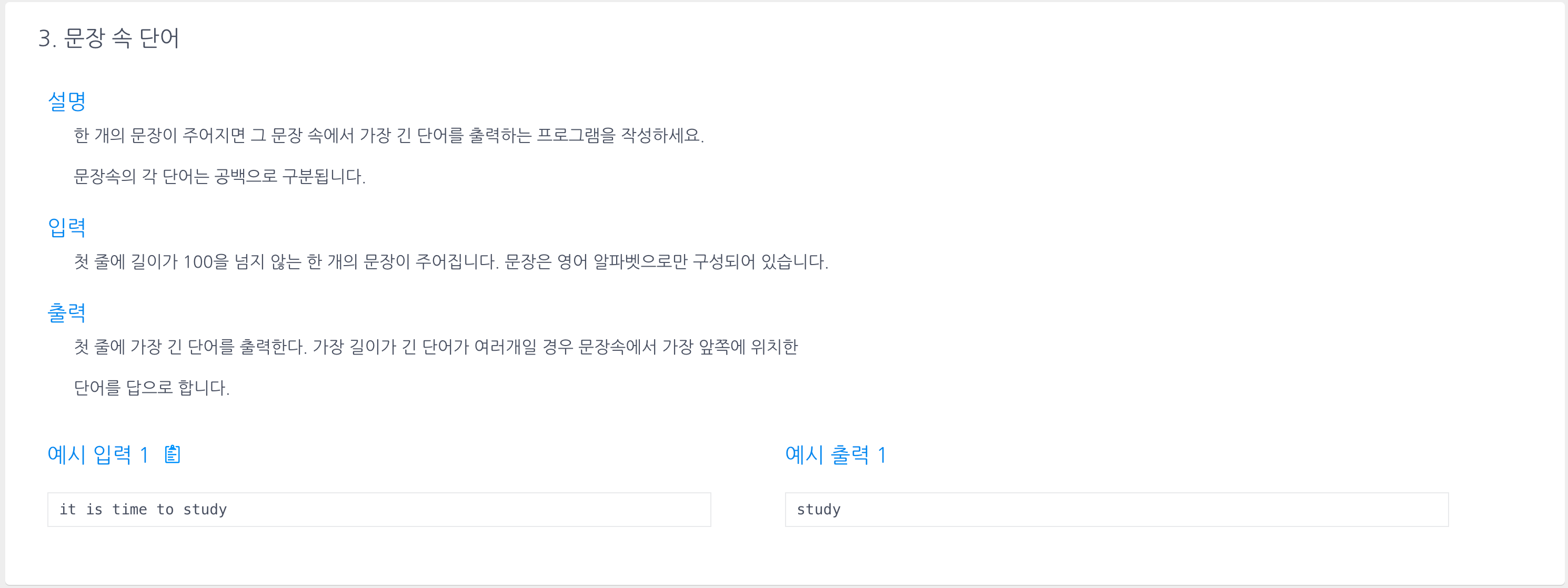알고리즘 연습 - 문장 속 단어 본문