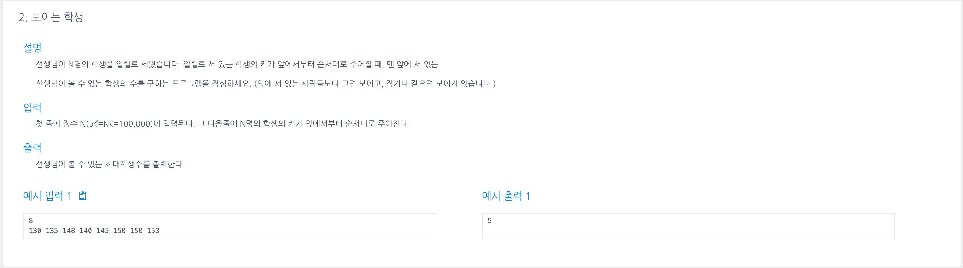 알고리즘 연습 - 보이는 학생 본문