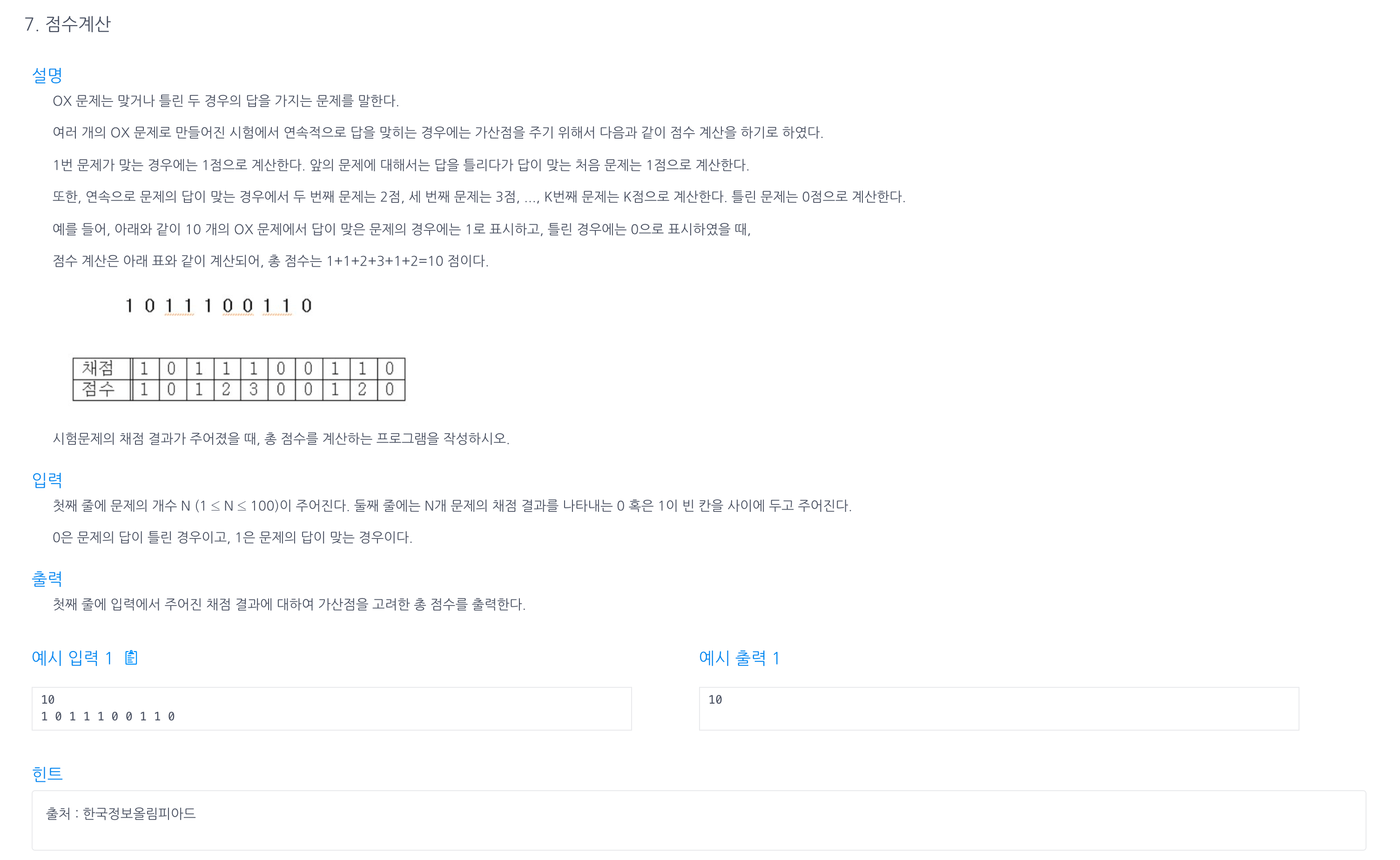 알고리즘 연습 - 점수계산 본문
