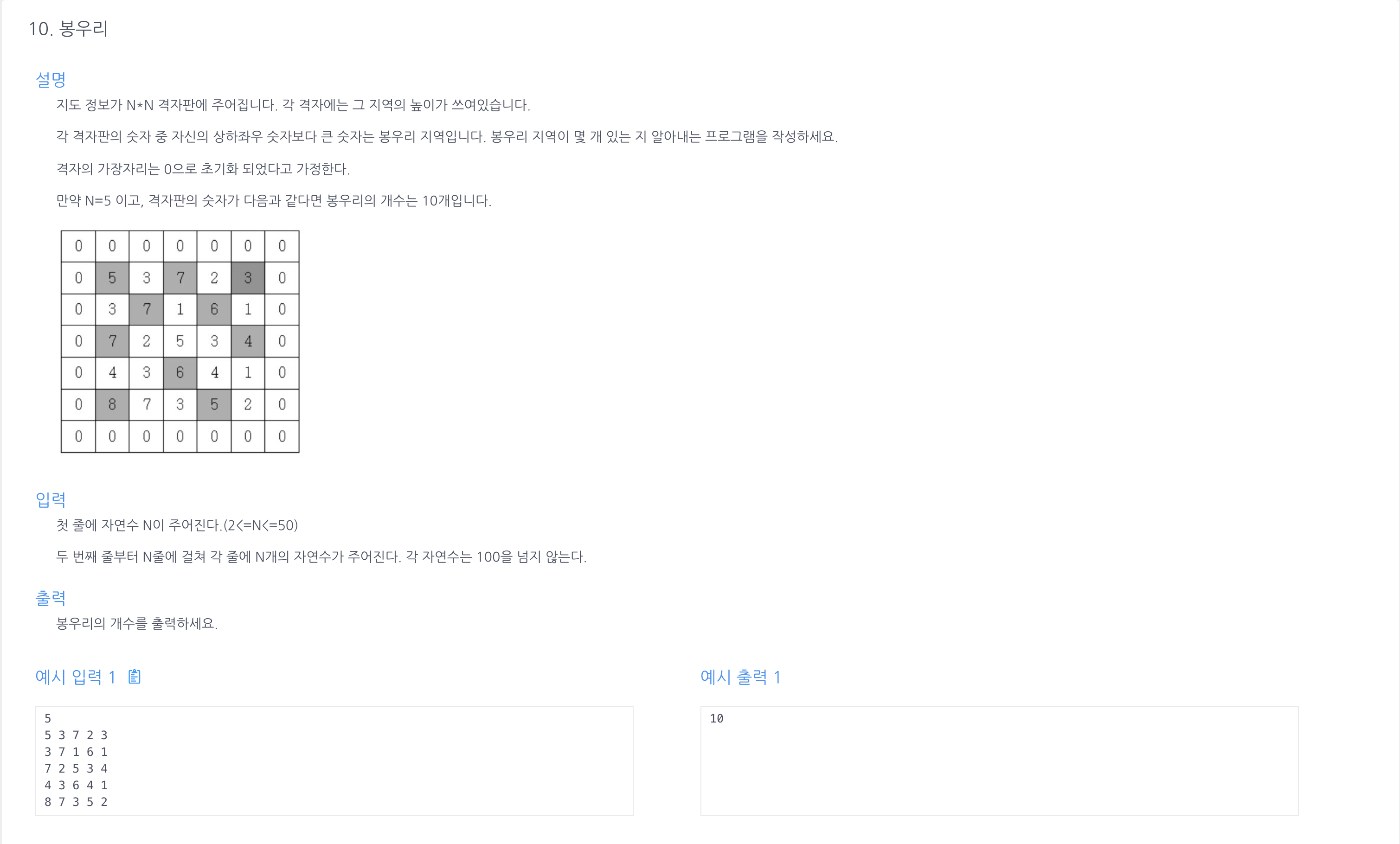 if (i != 0 && inputArrXY[i][j] < inputArrXY[i - 1][j]) { // 가장자리는 0으로 초기화 되고 격자판에서 위에 숫자가 자신보다 큰수인지 확인