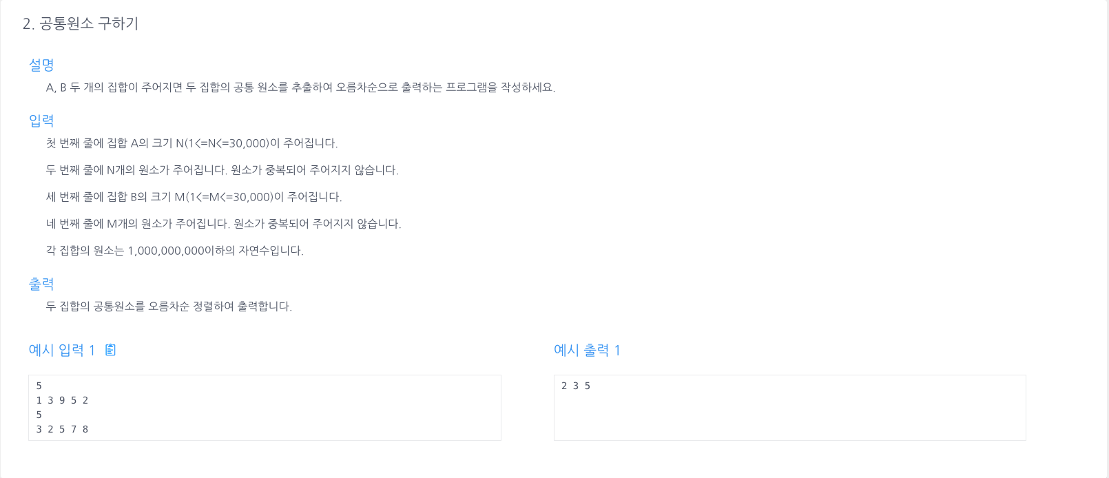 알고리즘 연습 - 공통원소구하기( Two Pointers ) 본문