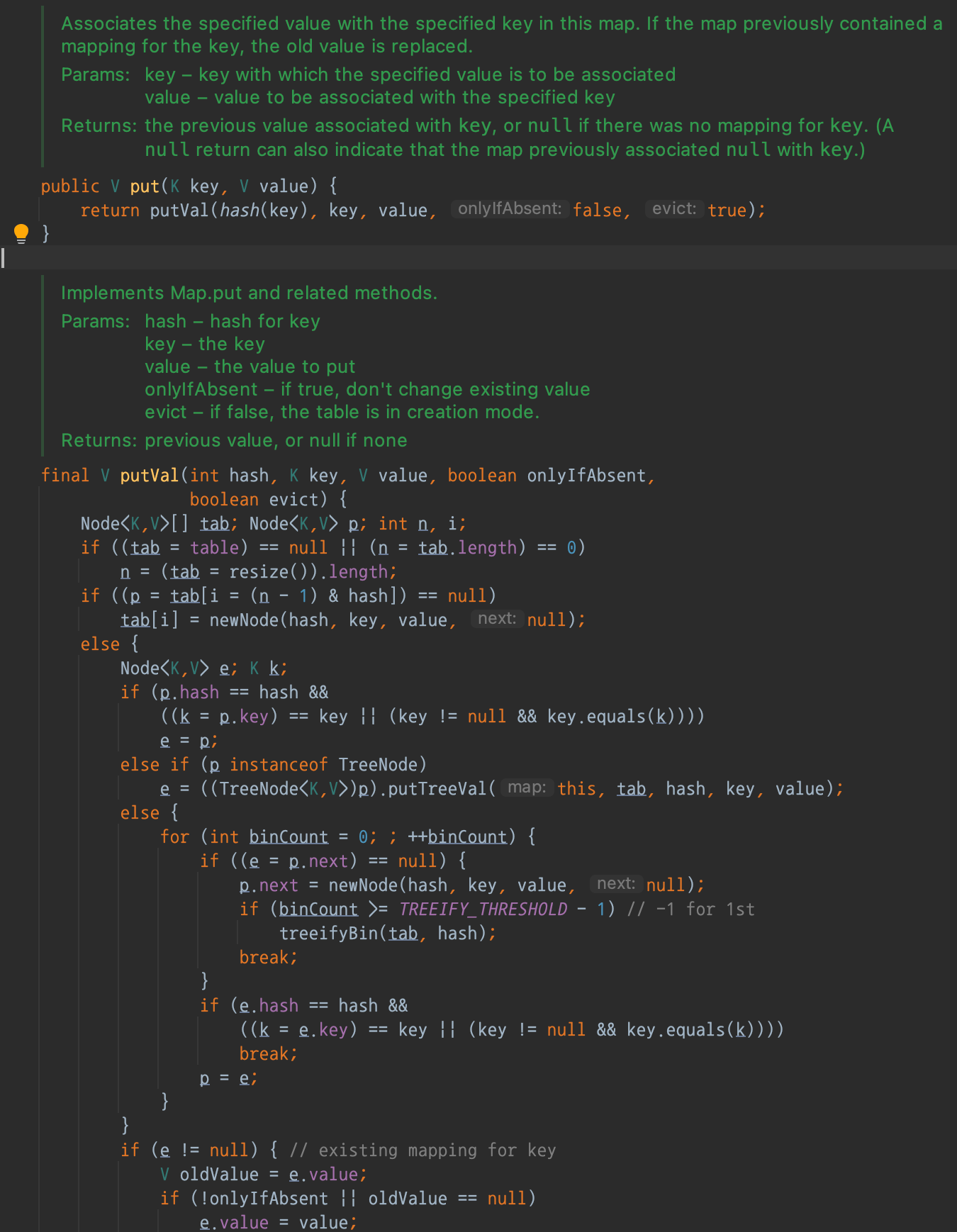 그러면 map.put 메소드에 들어가보자 (알고리즘은 잘 모르겠다..)